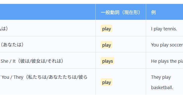 📚 基礎レベル ポイント1 一般動詞の基本(現在形) 一般動詞は「〜する」という動作を表します。主語によって形が変わります。 主語 ...