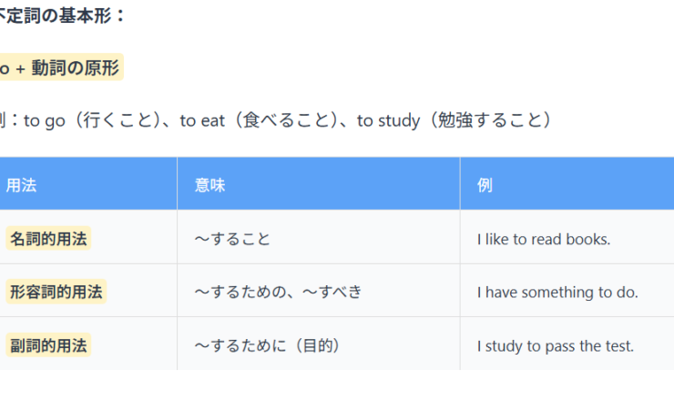 📚 基礎レベル ポイント1 不定詞とは? 不定詞は to + 動詞の原形 の形で、「〜すること」「〜するための」「〜す...
